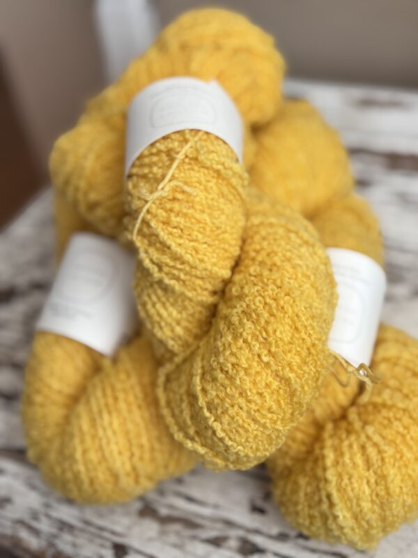 | Bouclé DK | Punky Brewster, Super Green, Yellow, Pink, Azuren, Living in Blue, The Blue Spot, Brown Fish, Rotten Peach, Mona toetje, Cappuccino, The best combi, The Grass is always, Why the red, The grass is always greener |